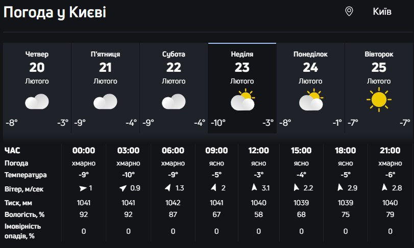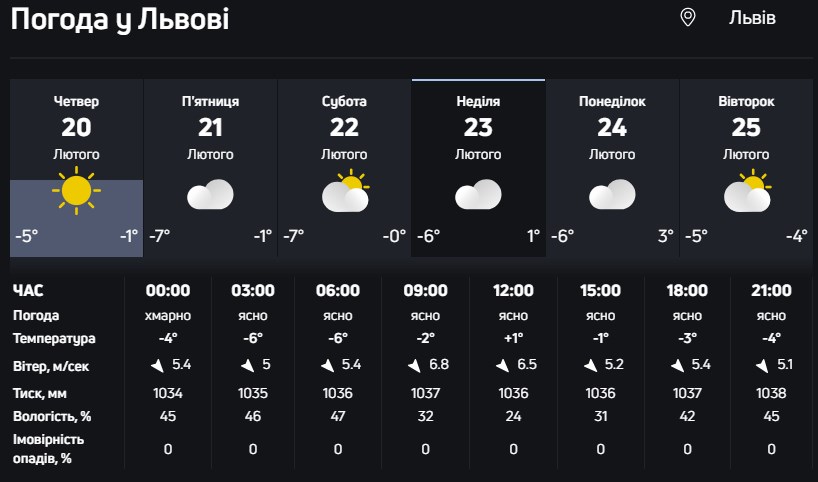 У наступні дні нічні морози ослабнуть, а вдень збережеться плюсова температура. Наприклад, 28 лютого вночі очікується від -3° до +1°, а вдень стовпчики термометрів покажуть +2°...+7°.